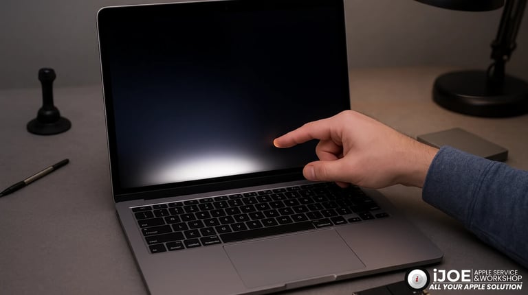 Seorang editor konten digital datang ke iJOE dengan MacBook 13 inci yang baru mulai menampilkan garis horizontal tipis di bawah layar. Ia baru sadar ketika bekerja larut malam, saat cahaya rendah layar menjadi lebih kontras.