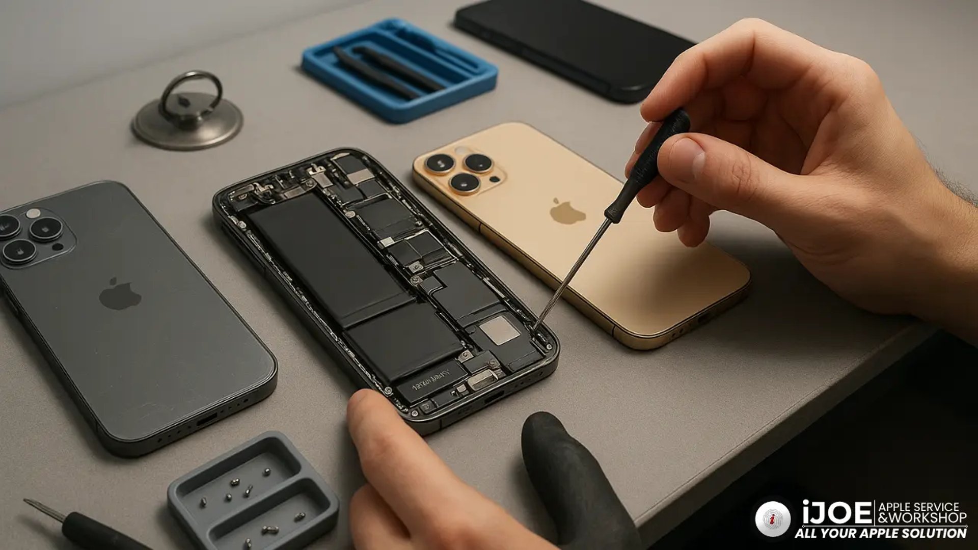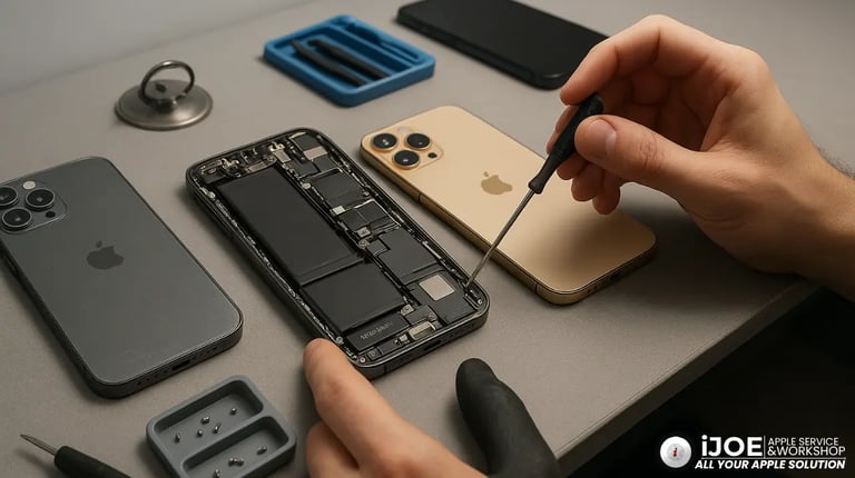 Di iJOE Apple Service Surabaya, proses ini dilakukan dengan presisi tinggi — bukan asal lepas-pasang.