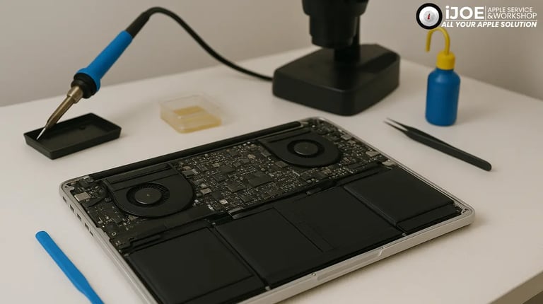Bawa aja ke iJOE Apple Service Surabaya, tempat di mana setiap MacBook yang “bisu” bisa balik nyanyi lagi.