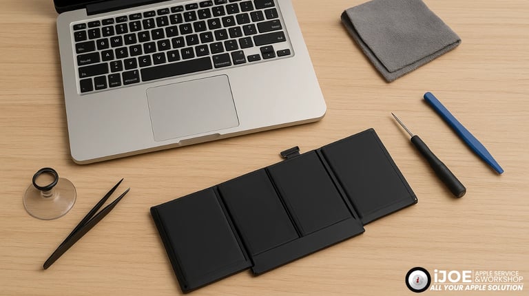 iJOE bukan tempat servis biasa. Mereka spesialis perangkat Apple, mulai dari MacBook, iPhone, iMac, sampai iPad. Untuk kasus baterai, iJOE punya prosedur khusus yang menjamin hasil kerja rapi dan performa maksimal setelah penggantian.