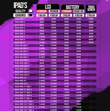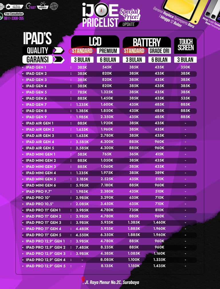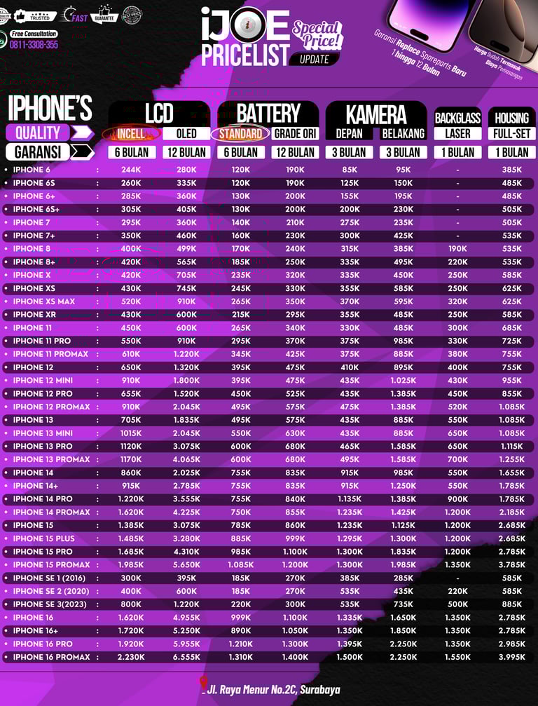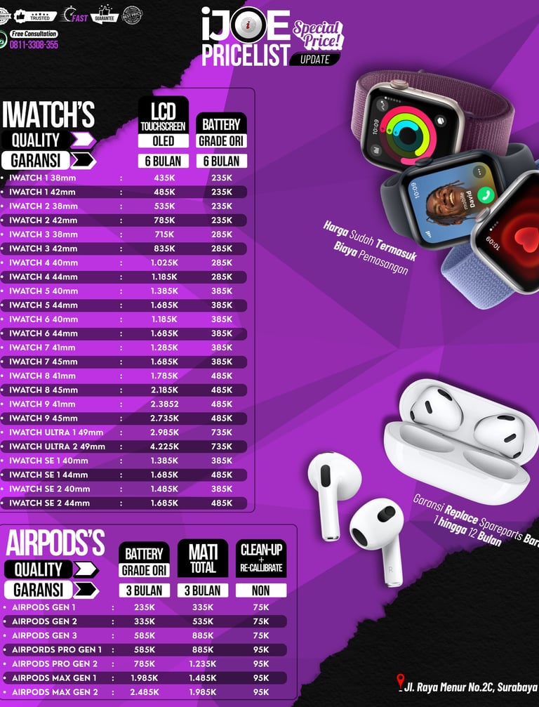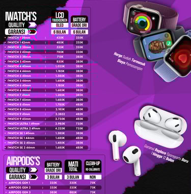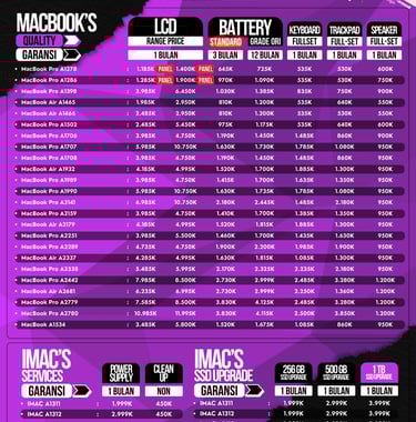 Harga Service iPhone, Macbook, iPad, Apple Watch. Harga akan berubah sewaktu waktu dan ketentuan promo setiap bulan