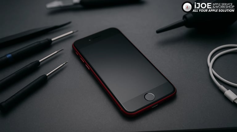 Pagi itu suasananya masih agak dingin setelah hujan semalaman. Seorang pengguna iPhone datang ke iJOE Apple Service Surabaya, wajahnya campur antara panik dan pasrah. Di tangannya ada sebuah iPhone SE 2020 berwarna merah yang sudah beberapa hari tak mau nyala. Katanya, “Mas, ini iPhone saya tiba-tiba mati total habis ditinggal ngecas semalaman. Tadinya masih normal banget.”