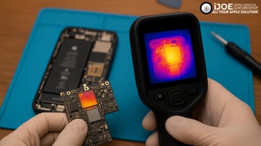 Overheat pada iPhone 11 sudah menjadi salah satu masalah yang paling sering kami temui di ruang operasi teknis IJOE Apple Service. Meski terlihat sederhana dari sisi pengguna “kenapa HP-ku panas terus ya?” namun dari sisi teknisi kerusakan ini jauh lebih kompleks dan sering melibatkan rangkaian pada level board, bukan sekadar baterai atau software.